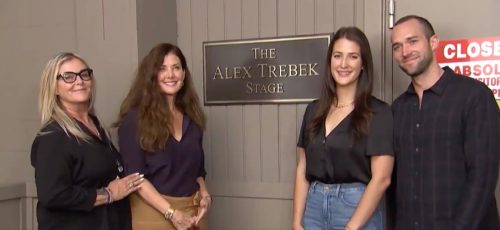 “Earlier today, with Alex’s wife, Jean, son Matt, and daughters Emily and Nicky, we dedicated the stage in his honor,” Gilbert said, as Trebek’s family stood on either side of a plaque displaying the new stage name. “It will now forever be known as the Alex Trebek Stage.” A tweet from Jeopardy! captioned the video clip, “And now for the first time from the Alex Trebek Stage, let’s play Jeopardy!”