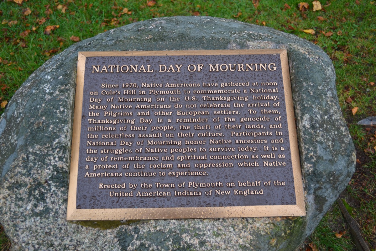 Plymouth, Massachusetts—home to the very first Thanksgiving—holds the National Day of Mourning on Thanksgiving every year. The day is an annual protest to remind the public about the suffering of Native Americans following the Pilgrims’ arrival in 1620. Native Americans in New England started the tradition in 1970.