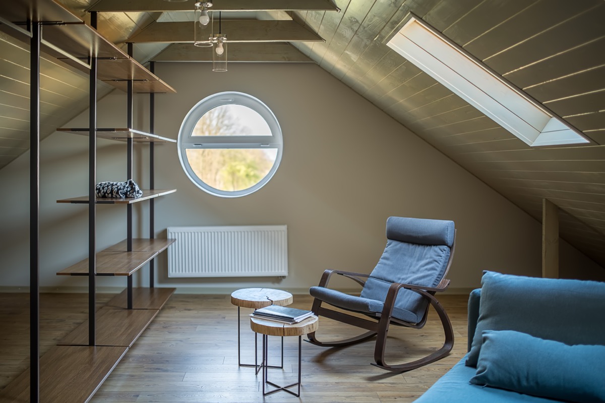 Since most attics are basically all roof, there are never enough windows—at most, two at the gable ends, plus a couple of dormers. If you’re up for a project (and have some construction talent), it’s not too difficult to add in a few skylights, which will considerably brighten up the space.Â