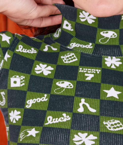 Forscutt also recommends the tops and jackets. “If I was in search of a fun matching set, I would get the Lucky Western Pants in green with the Lucky Essential Turtleneck in green.” For an idea of pricing, these items retail for $125 and $70, respectively.