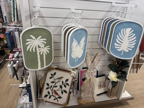 I found these little wall hangings by the checkout. I love that they have ring hooks, making them easy to hang anywhere. I think they are perfect for a bathroom or anywhere in a beach house.