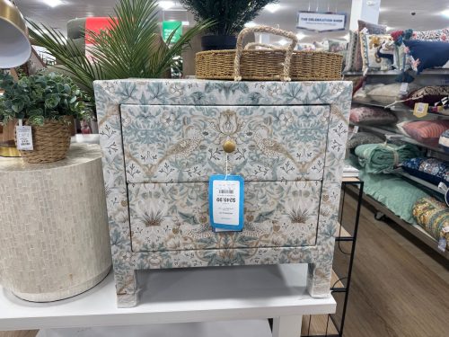 This William Morris nightstand with the trademark Strawberry Thief upholstered nightstand is everything. I don’t need any nightstands, but I almost bought them anyway. Get the statement maker for $249.99. Can’t make it to the store? You can also order it from T.J. Maxx for the same price.