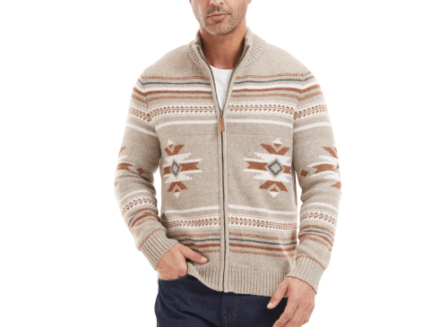 The Frye Men’s Zip Mock Cardigan is on major clearance, $24.97. “Bought the tan for our son. Great style and fit. Washes up nicely and air-dried quickly flat on top of the dryer. I love the leather zipper pull, but the plain back looks unfinished/cheapens the overall look. The front and sleeves are on trend and look terrific,” writes a shopper.