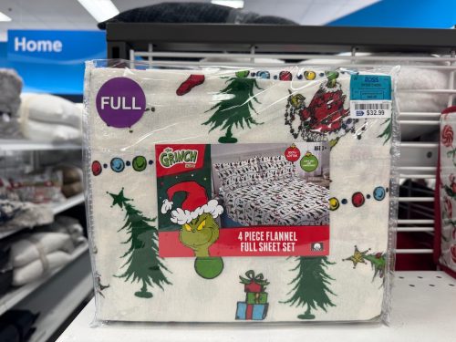 Have a Merry Grinchmas with this adorable set of Grinch-themed sheets. Made of super-soft flannel, the four-piece set comes with a flat and fitted sheet plus two pillow shams. It is only $32.99, but it retails for over $45 at other stores.