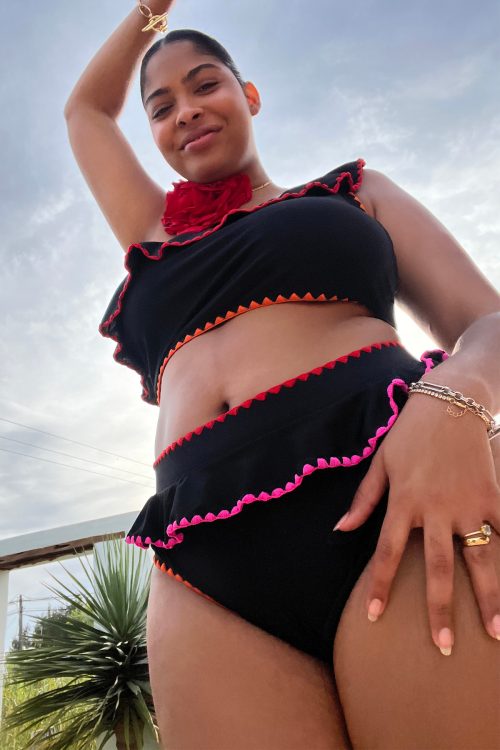 “The designer really took her time to figure out the best way to show off a plus-size woman’s curves, providing her with the thoughtful cuts and high-quality fabrics that plus-size women are often denied,” says Ashley Full, personal stylist and co-founder of the luxury plus size fashion destination AMOUR781, of the swimwear brand Sunset Vibes.
