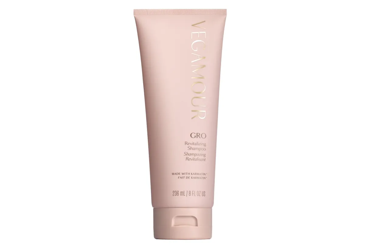 “For instantly fuller-looking hair, try GRO Revitalizing Shampoo from Vegamour. It contains a vegan keratin, which can coat the hair to make it look thicker and smoother, and it also contains caffeine, an ingredient that’s been shown to counteract both hormonal and stress-induced hair loss,” she says.