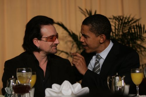 “And the president said to Ali after about 10 minutes, ‘Where’s Bono gone?’ She said, ‘Ah, he’s just gone for a sleep.’ He said, ‘I’m sorry?’ She said, ‘He has to. He just has to go for these sleeps. He’ll be back in 10 minutes. I’ve been with him for 30 years, don’t you worry a thing about him, Mr. President. I’ll go find him.’”