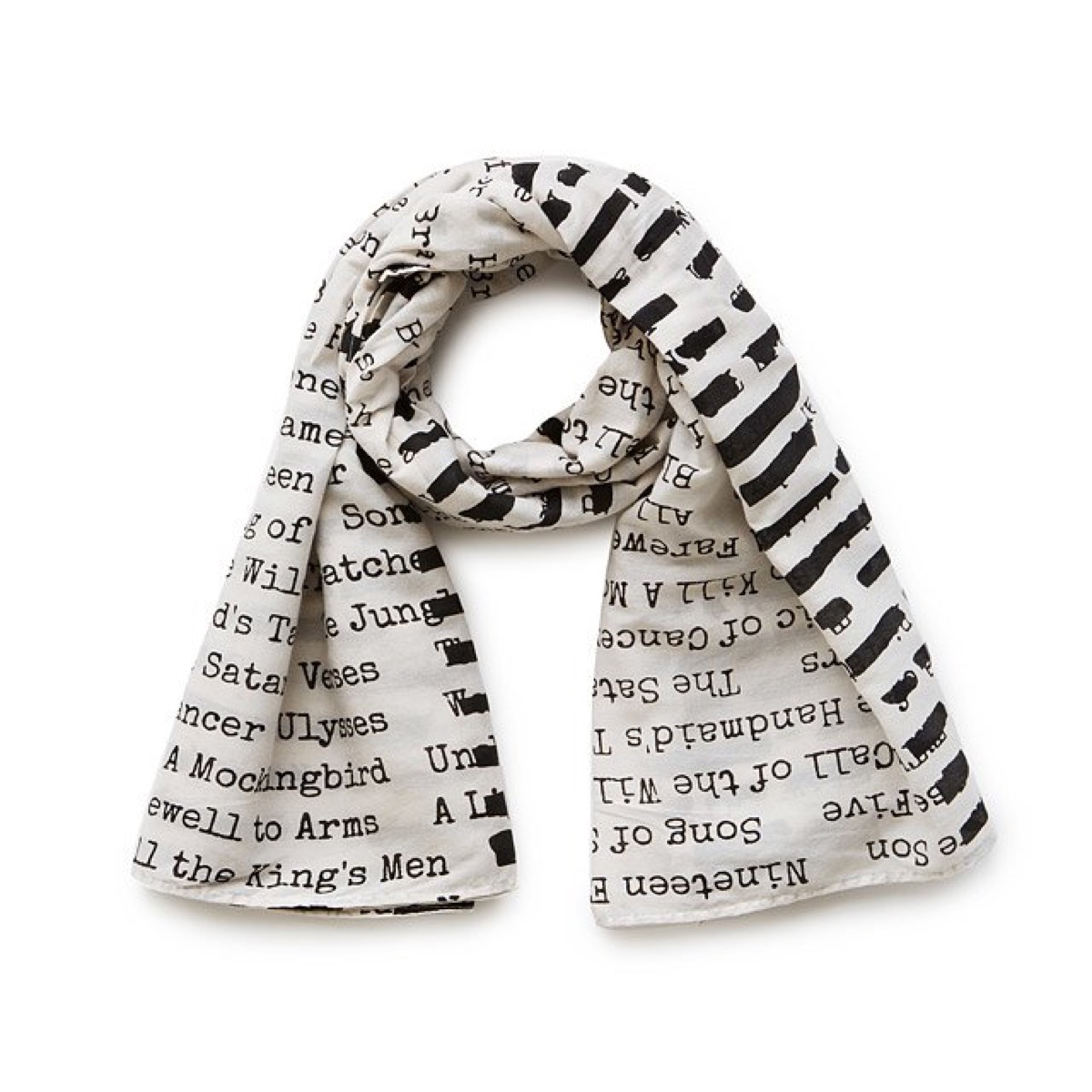 From A Handmaid’s Tale to To Kill a Mockingbird, some of the most influential titles in literary history have been banned at one point or another. The reader in your life will love paying tribute to a few of them with this white scarf emblazoned with the names of controversial books.
