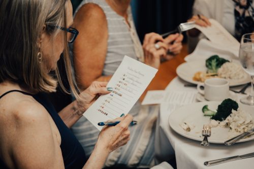 Seat all the guests in a circle. Grab a piece of paper and jot down a line about the couple, almost as if it were the first line in a poem. Pass it to the person on your right as the bride opens her presents. Every time the paper reaches someone new, they’ll have to come up with a new line. Instruct them to read what was written immediately above so that there’s some cohesion to the group’s creation. Then, have them fold the paper so that everything is covered except for the last line written before handing it over to the next in line. Once the paper has made its way around the room, the hostess can read the whole poem out loud.