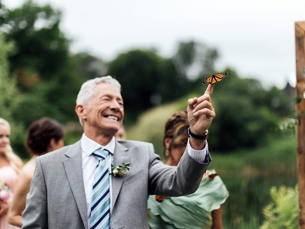 One of the butterflies landed on the finger of the groom’s father and lingered there, resulting in an incredible photo that has since gone viral.