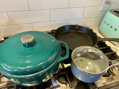I also can’t say enough good things about my Lodge Dutch oven, which is just as good as a Le Creuset in my opinion, but is only $80 on Amazon and often goes on sale.