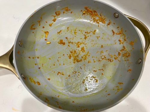 Inevitably, I found myself adding more and more oil to combat the sticking. This is counterintuitive since Caraway touts that their non-stick cookware only requires a small bit of oil. It’s also not so healthy.