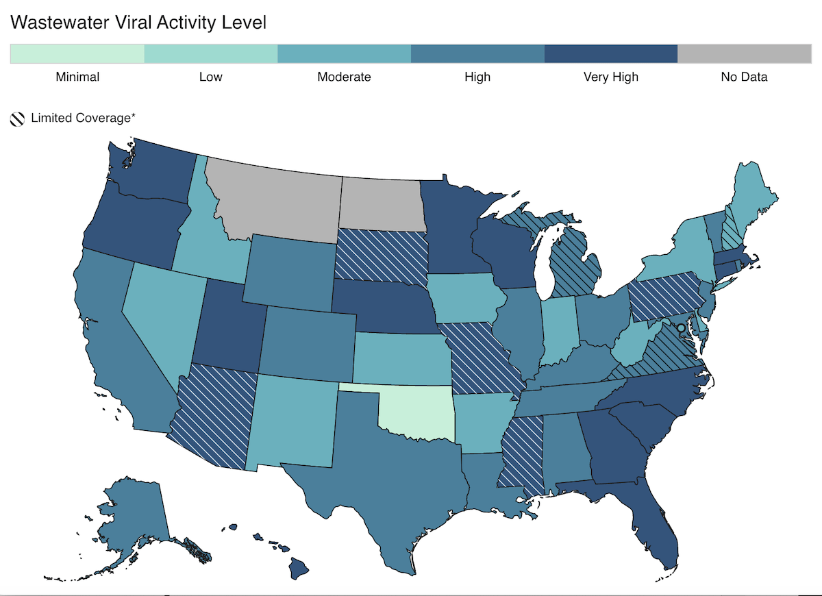 In total, this is 35 states with “very high” or “high” levels of influenza A found in new wastewater samples.