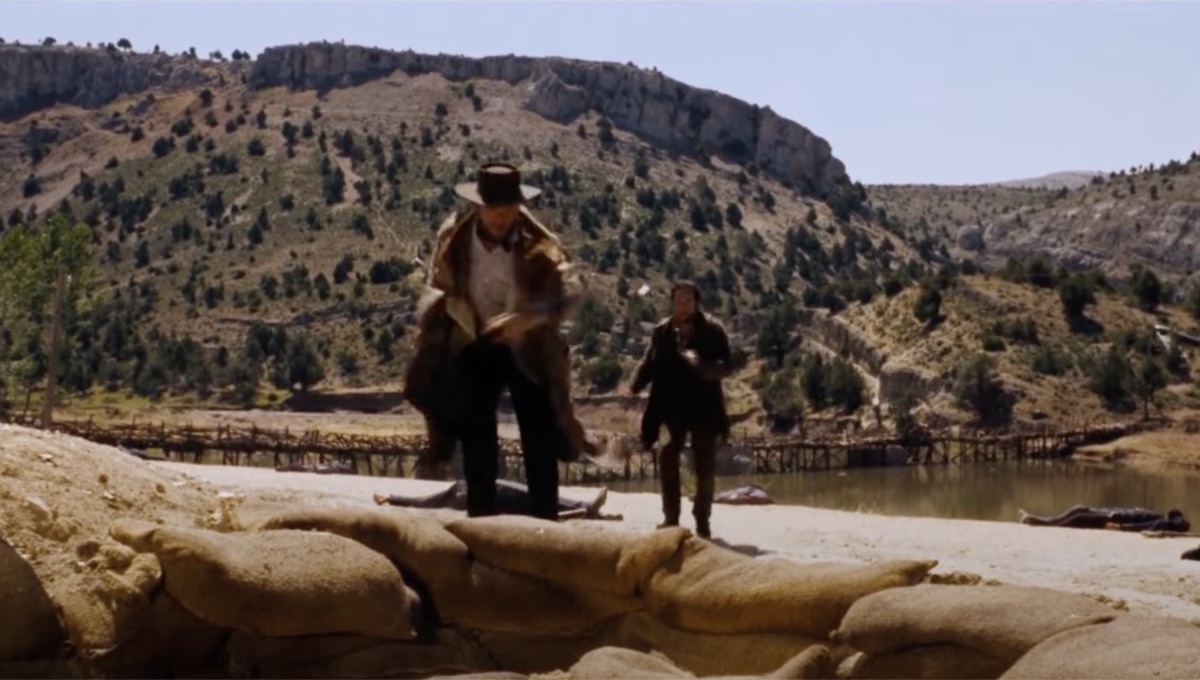 Far in the background of the upper right corner of a scene in which Clint Eastwood’s Blondie and Eli Wallach’s Tuco attach dynamite to the a in the classic Spaghetti Western The Good, the Bad, and the Ugly, a car can be spotted driving by. The film is set in 1862, and the automobile would not be invented until 1886. (Also, in the next scene, the pair are completely dry, despite having just been in the river.)
