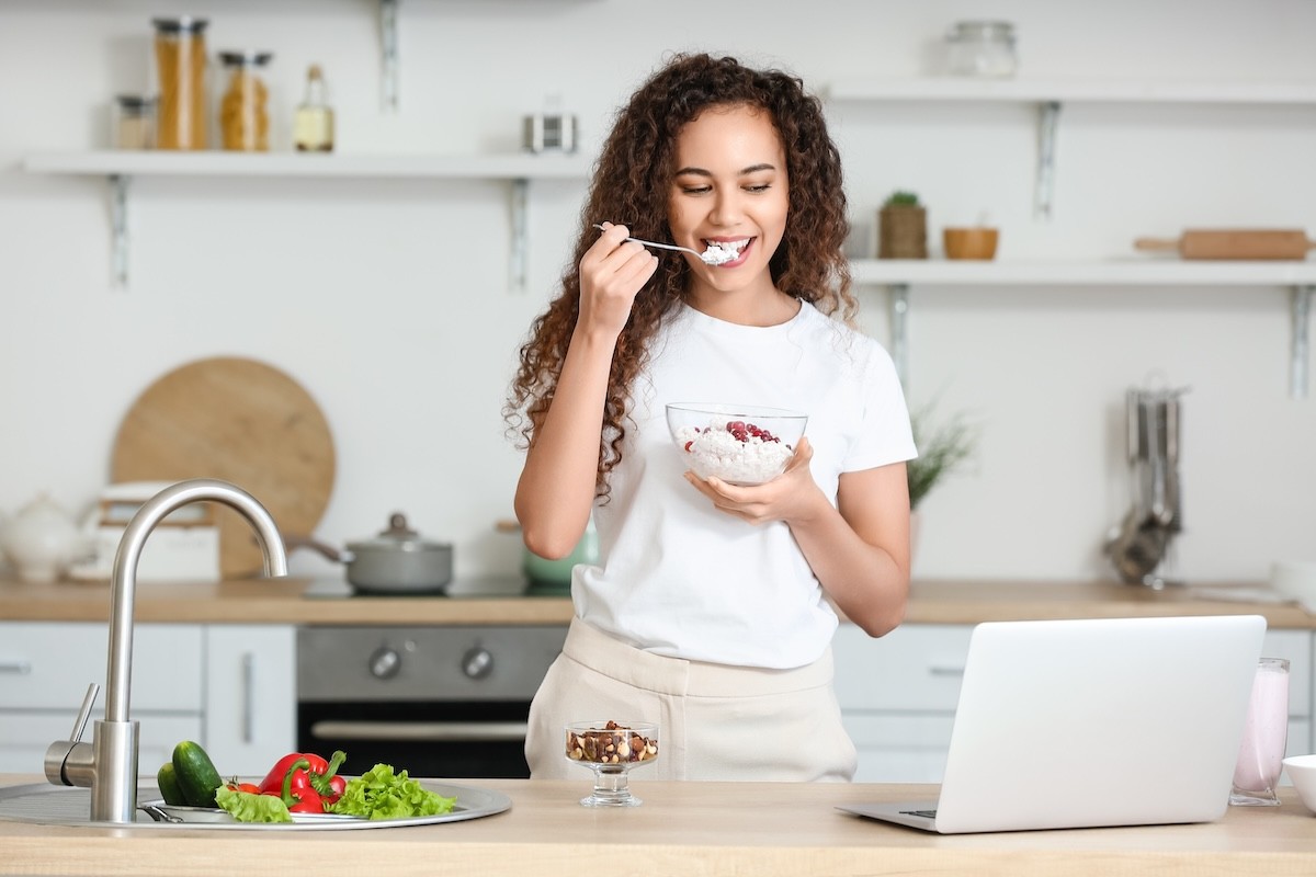 “Foods that are high in protein, fiber, and fat help improve feelings of fullness and enable people to be satisfied on smaller portions of food,” Luk says. “Cottage cheese is rich in protein and available in varying degrees of milk fat. While it naturally doesn’t have fiber, cottage cheese pairs very well with high-fiber foods such as berries, nuts, and seeds.”