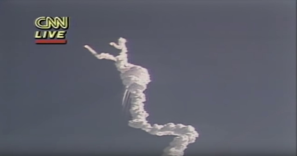 On January 28, 1986, all eyes were on Cape Canaveral, Florida, as NASA launched the Space Shuttle Challenger. The mission—nationally broadcast on CNN—had received extensive media coverage in the prior months due to the on-board presence of Christa McAuliffe, who would be the first teacher to be sent into space. Hope quickly turned to horror, however, as the ship burst into flames, breaking apart 73 seconds into its flight and leading to the deaths of all seven members on board.