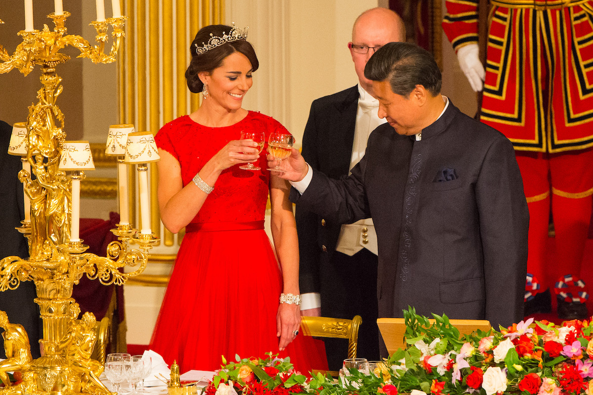 The royal recycler is known to wear her favorite outfits over and over again and her choice of tiara is no exception. Already a master of diplomatic dressing, in 2015, Kate opted to wear the Lotus Flower tiara again (pictured here) at a state dinner given for the president of China, Xi Jinping, and paired the sparkling topper with a stunning red bespoke gown designed by Jenny Packham in a nod to China’s flag and the country’s cultural belief that red brings good luck and happiness.