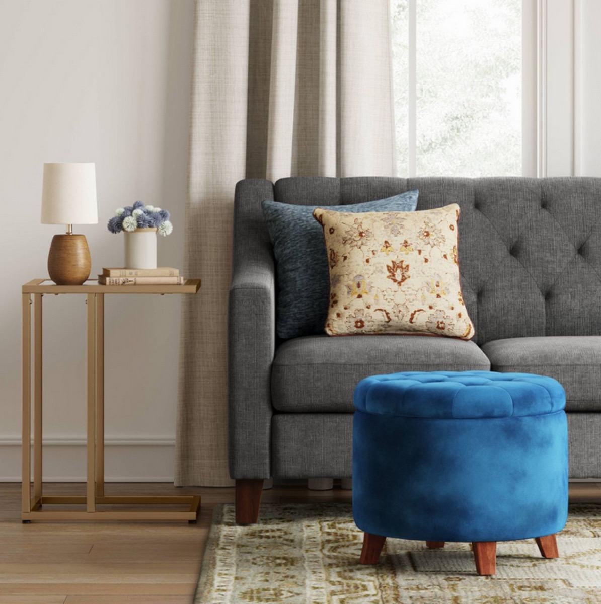 This tufted storage ottoman