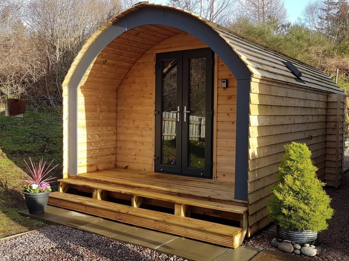 On the outskirts of Narberth, West Wales, this tin cabin’s gingerbread front porch serves up plenty of Victorian-inspired charm.