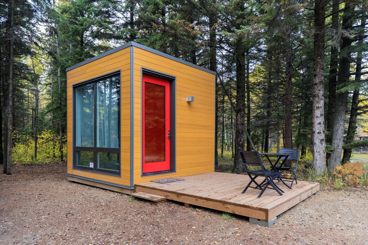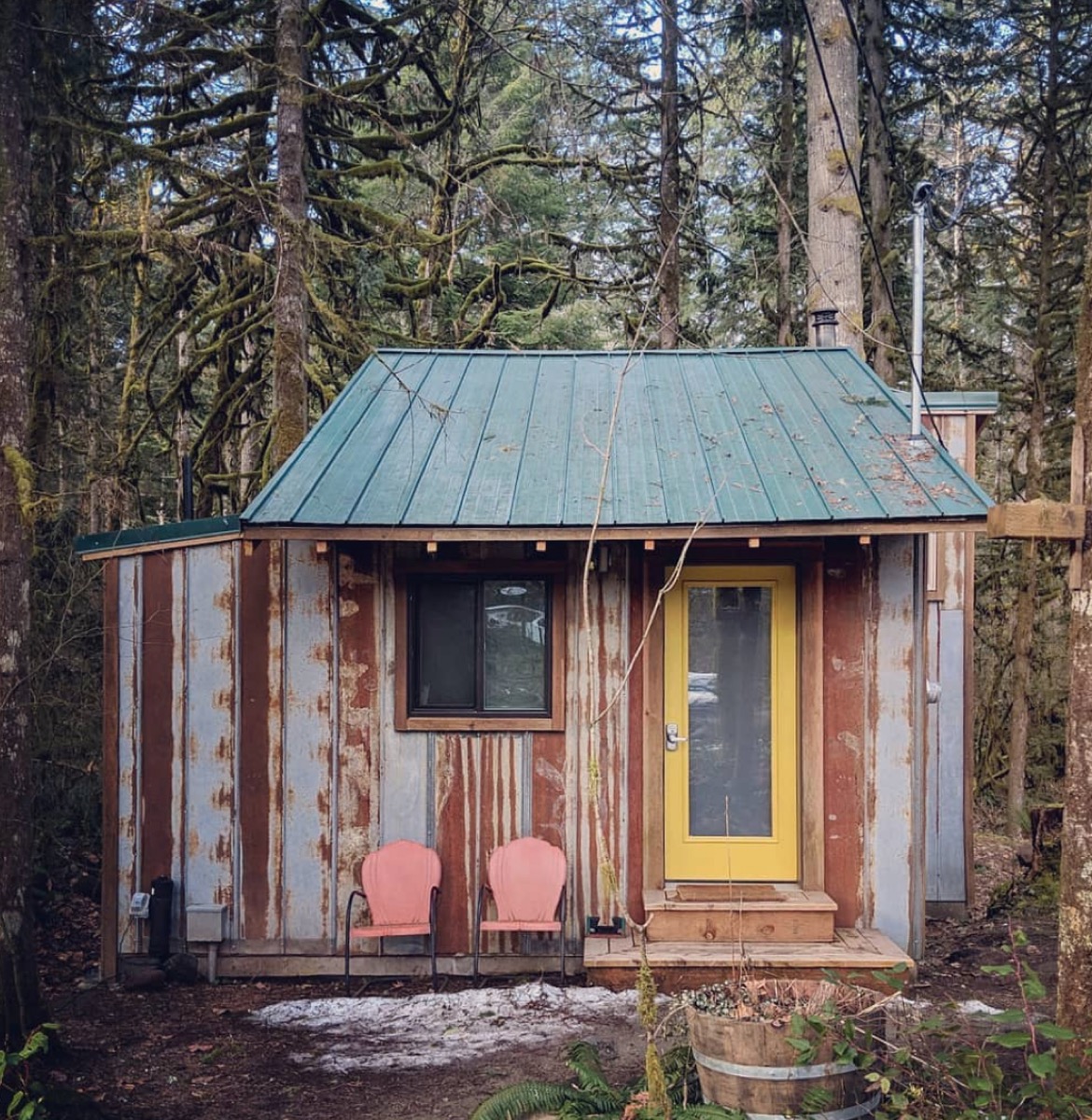 The Instagram-approved version of a log cabin, this 261-square-foot tiny home and its peaked metal roof are perfect for listening to the rain fall at night.