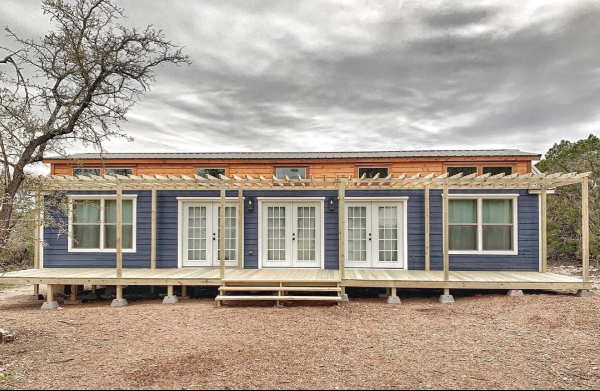 Couple Joshua and Shelley Engberg have become masters of tiny home design, as evidenced by this adorable home. At 374 square feet, this two-story house—complete with a pass-through to the outdoors—has more than enough space for a couple, family, or just a fun weekend away with friends.
