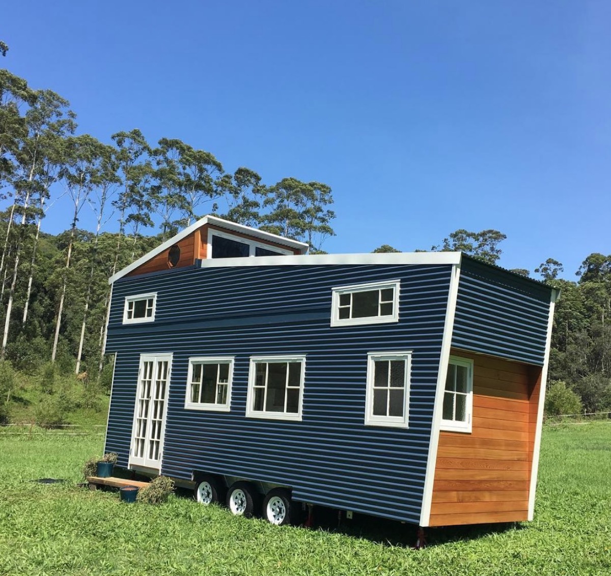 With a wood-lined frame, bright blue siding, large windows, and a set of wheels ready to hit the road, this French tiny home can take you all the places you’ve ever dreamed of going.