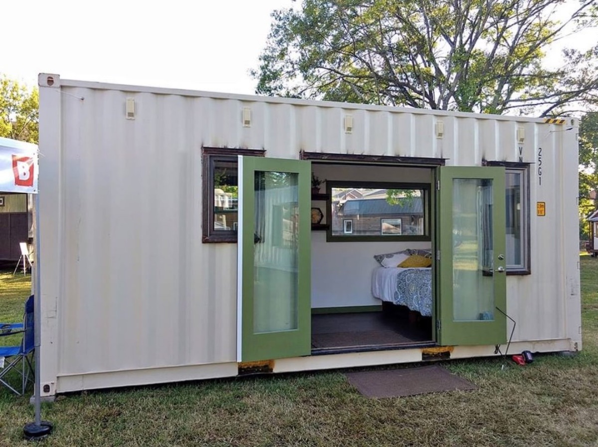 Made from an upcycled shipping container, this adorable tiny home is nothing if not charming.