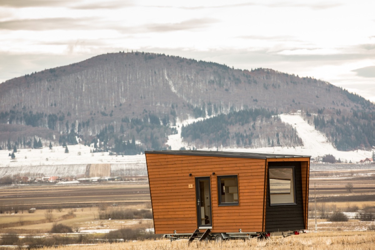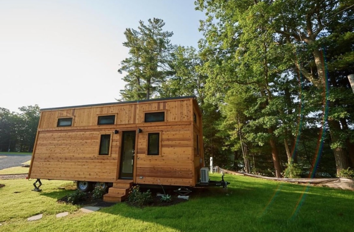 All windows and wheels, this wood-encased tiny home, dubbed the Harvest Moon House, is the ideal spot to cozy up and wait out the winter.