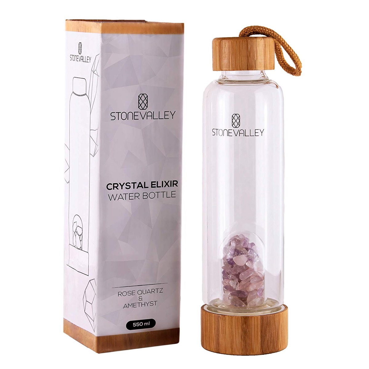 This rose quartz and amethyst bottle