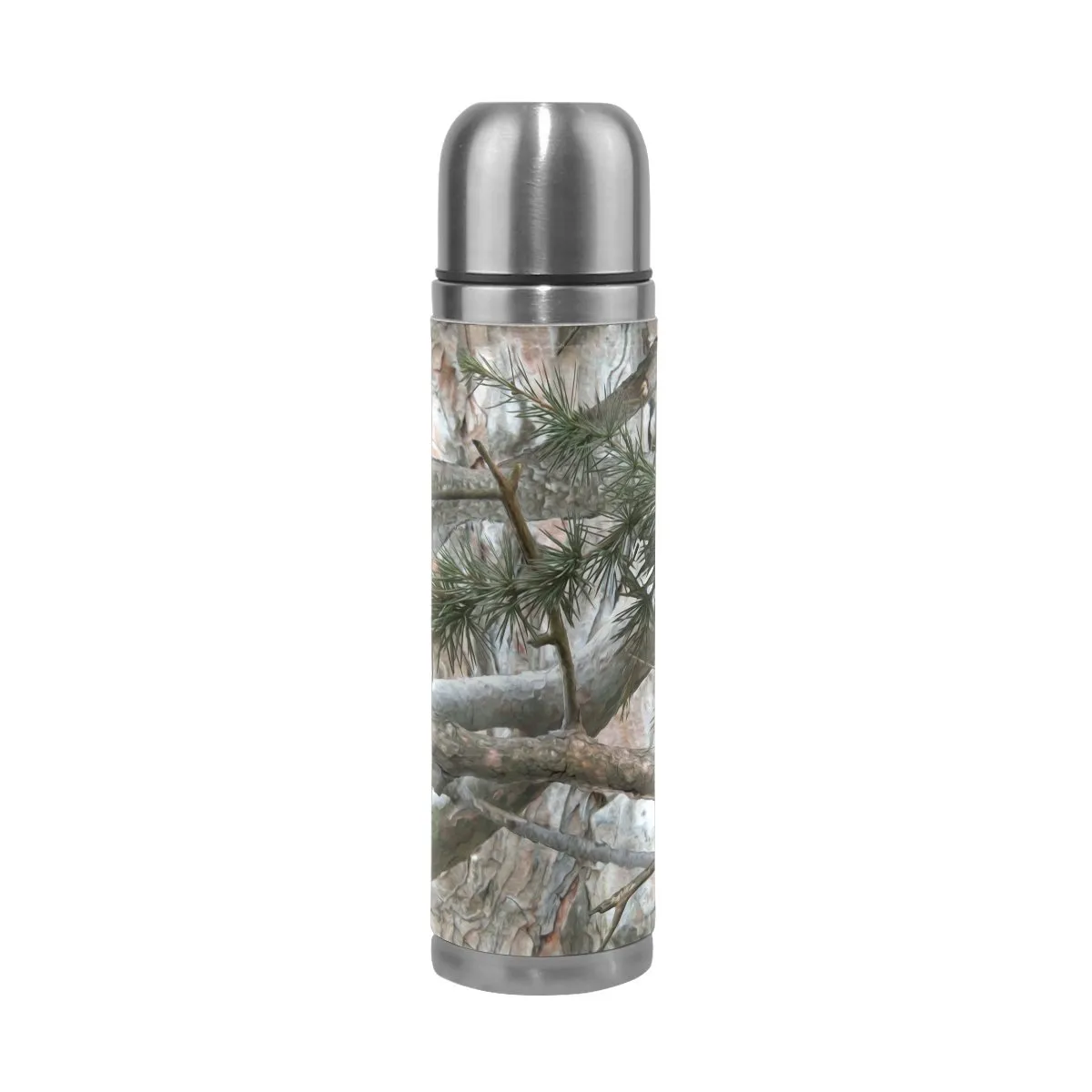 Love the great outdoors? This leather-covered water bottle, with its stylish tree branch and pine needle print, is the perfect ode to Mother Nature.
