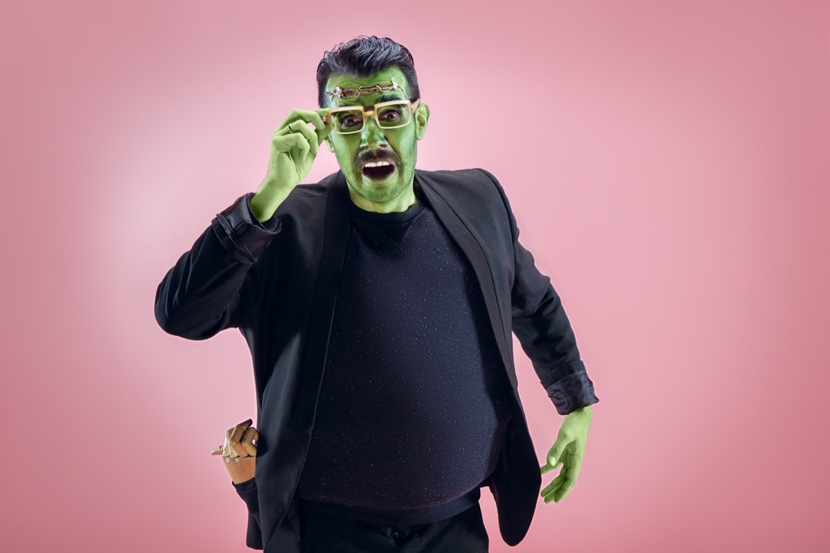 Why don’t you go green this Halloween with a fun Frankenstein costume? Using green body paint, cover any body part that’s not going to be clothed. Throw on some black garments and spray some black hairspray in your ‘do, and you’re now the monster from Mary Shelley’s Frankenstein.