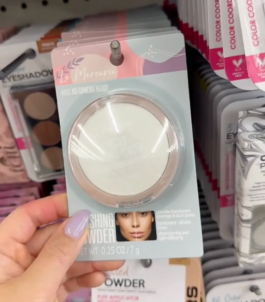 Another new makeup-setting product you can pick up for $1.25 at Dollar Tree is this finishing powder from Le Mercerie. “This looks so legit,” said @beau.thi.ful again.