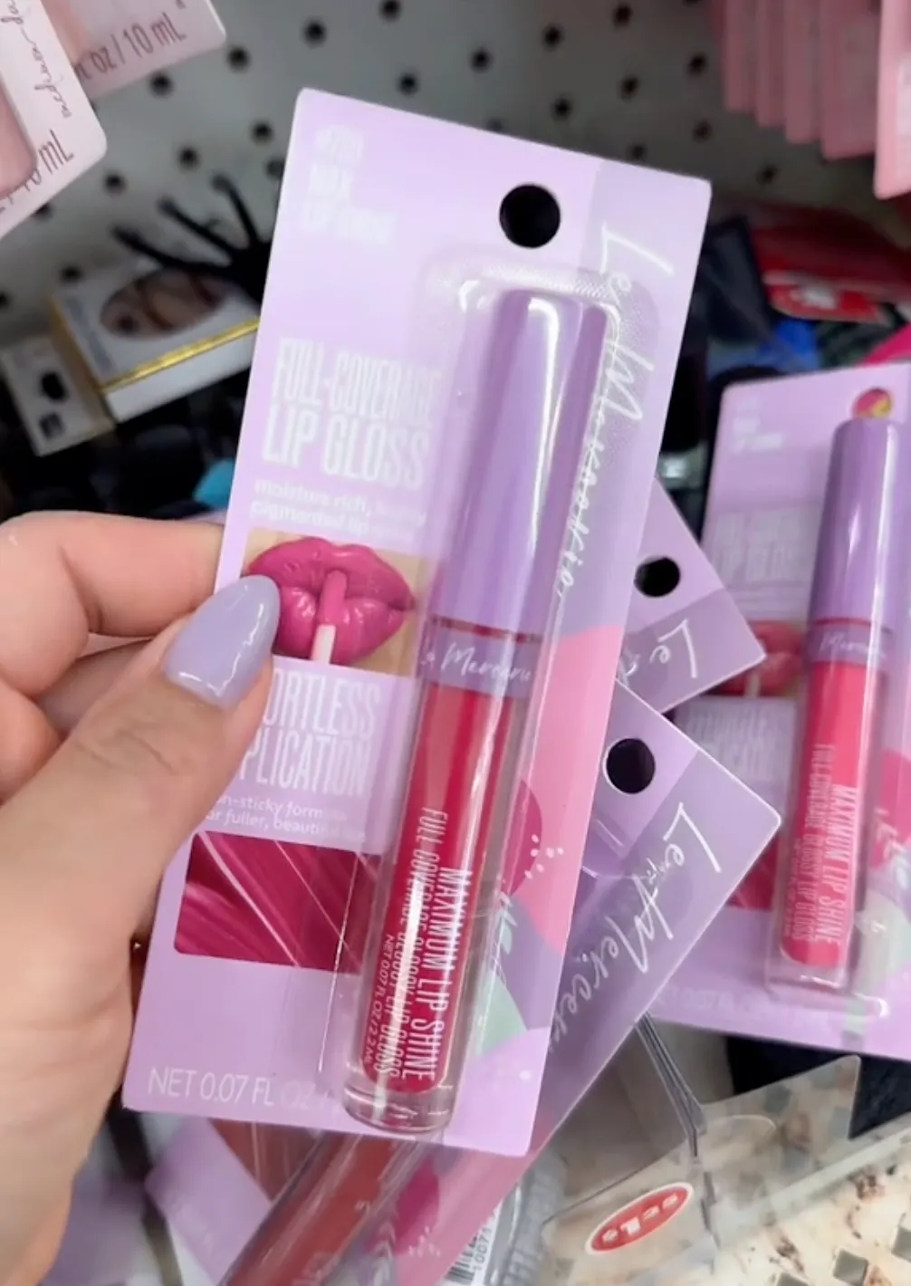 Another new Dollar Tree lip product comes from Le Mercerie, which @beau.thi.ful found on a separate shopping trip. These full-coverage lip glosses come in seven different colors, ranging from nude to light pink to deep ruby red.