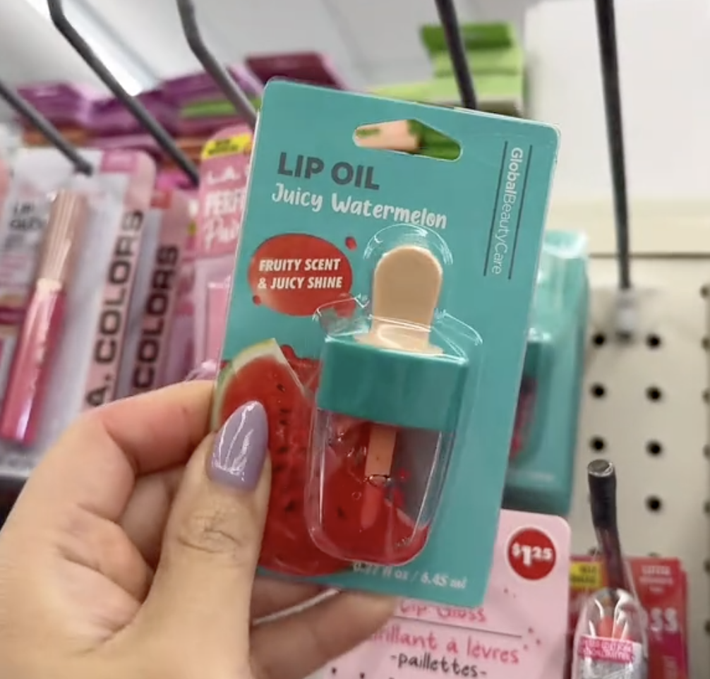 This fun watermelon lip oil recently started popping up at Dollar Tree stores, and @beau.thi.ful said, “I love these so much.”