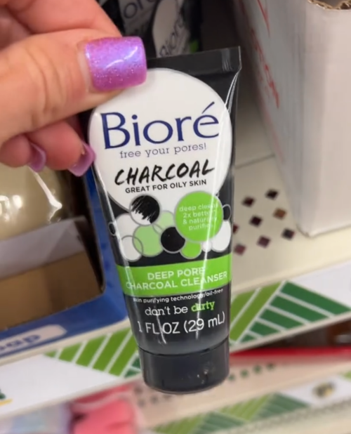 Let’s not forget about face wash for our travel toiletry bags. Dollar Tree has them, and Houser even grabbed a charcoal cleanser from Bioré.