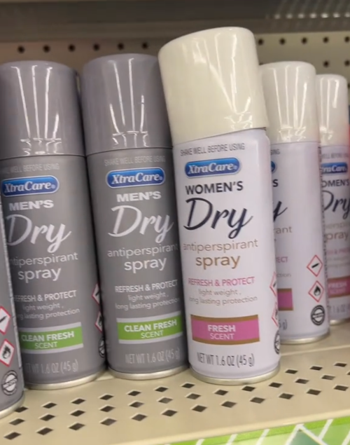 “They have tons of travel-size deodorant,” shared Houser, holding up a Dove brand stick. (Speed Stick versions were visible in the background, too.) She also found travel-size Dove spray deodorants for men and women.