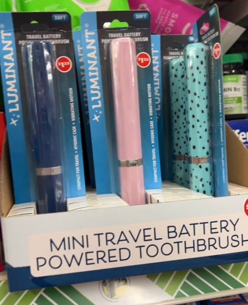 Speaking of fresh breath, these battery-powered toothbrushes are travel-size and just $1.25. “They even have the cover on them,” noted Houser.
