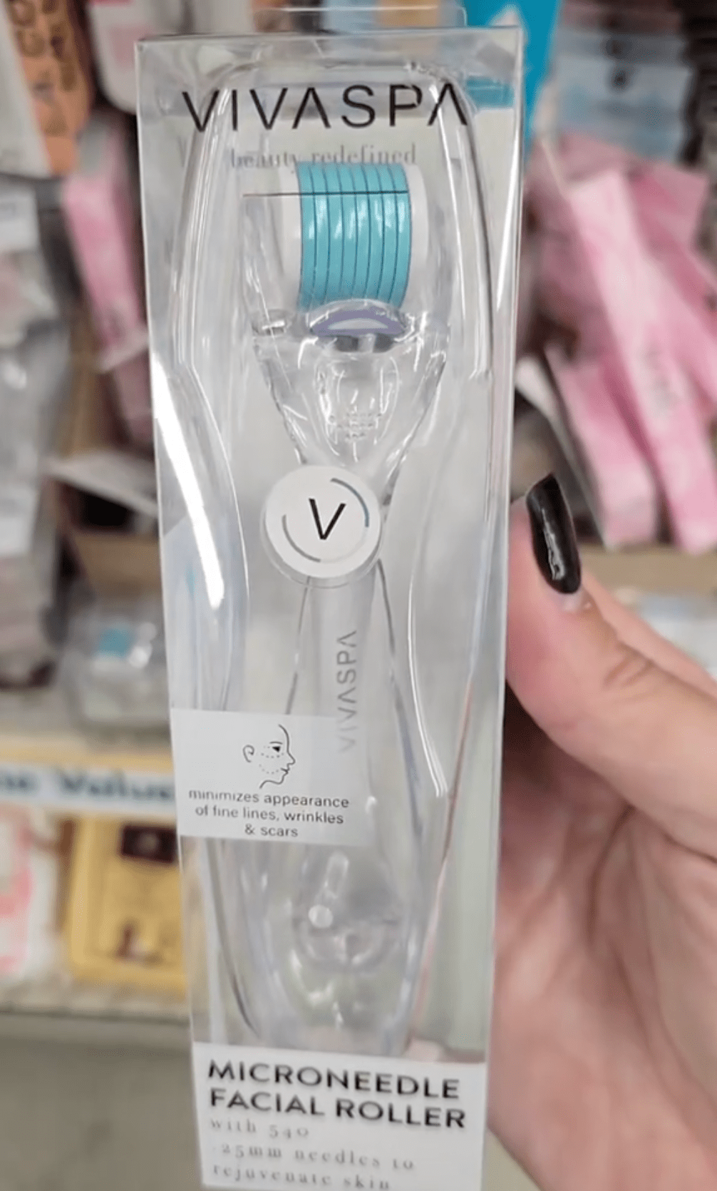 “I am so scared to use this, but I’m gonna try it,” said Schmutz when she found this microneedle facial roller at Dollar Tree.