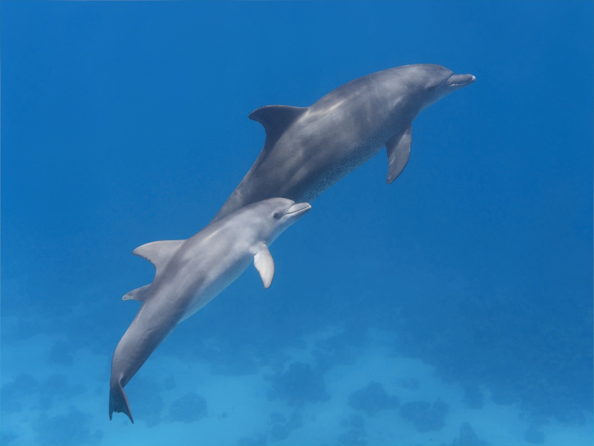 Speaking of dolphin ages… these creatures grow a new layer of teeth every year, creating rings that tell you how old each dolphin is (not unlike a tree). And for more incredible facts about life under the sea, check out 33 Mind-Blowing Facts About the Earth’s Oceans.