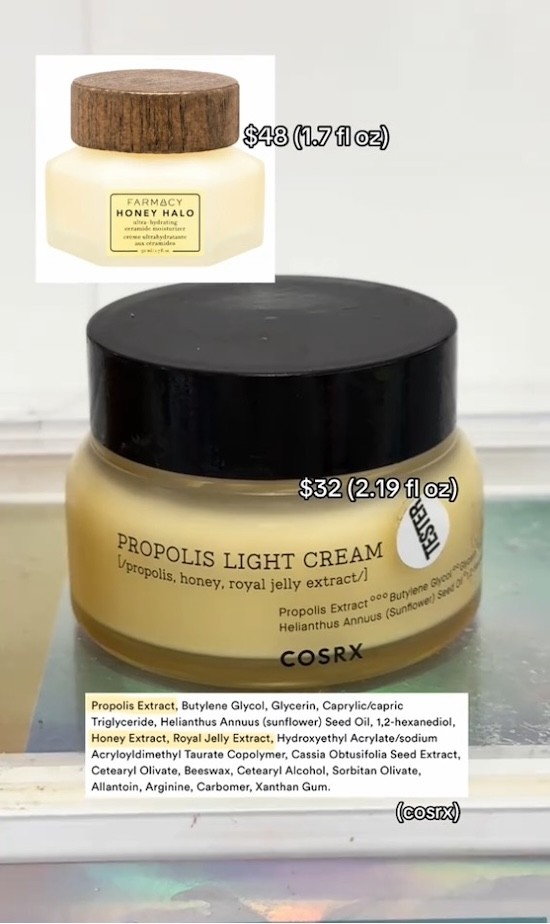 Farmacy Honey Halo retails for $48, while COSRX Propolis Light Cream costs $32 at Ulta and Amazon (at the latter, it was on sale for $17.50 at the time of writing).