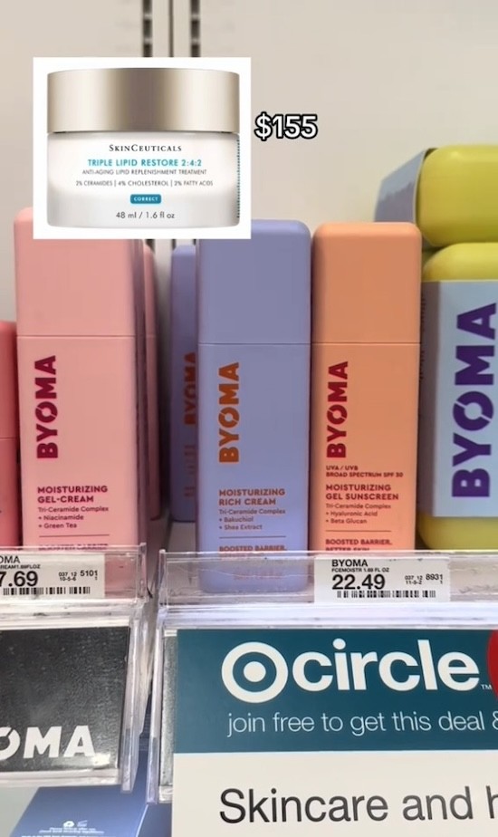 “The $155 SkinCeuticals moisturizer uses a ratio of cholesterol, ceramides, and fatty acids—a complex that Byoma uses in all their products,” said Babula.