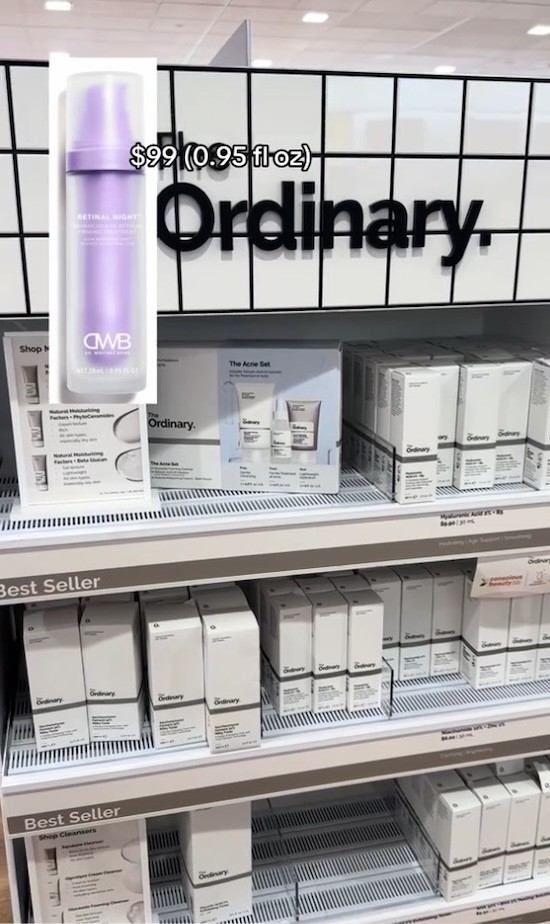 “The $99 Dr. Whitney Bowe retinal actually uses the same delivery system as The Ordinary does, and with The Ordinary, you’re actually getting 0.1 percent more retinal for only $15,” revealed Babula.