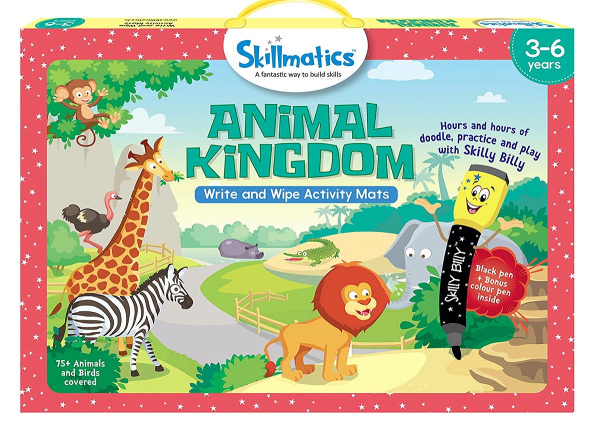 Lions and tigers and bears, oh my! The Skillmatics Animal Kingdom educational game for ages 3 to 6 will teach your little one all about the amazing world of animals. Featuring 15 learning activities, 6 double-sided activity mats, and a Skilly Billy Achievement Certificate, this engaging game builds focus, creative thinking, as well as a love of nature.