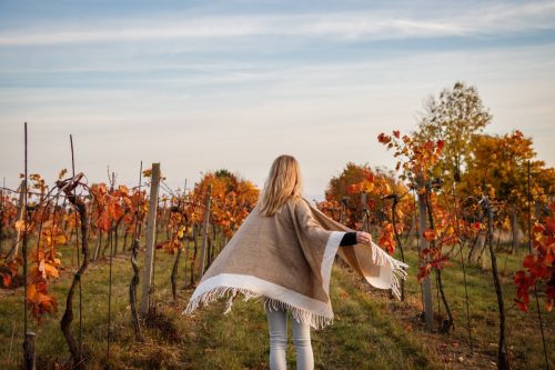 “Ponchos deliver warmth with a splash of drama. The swishy, billowing silhouette is attention-grabbing just as much as it is warm,” Kosich says. “Plus the airflow helps regulate body temperature on toasty fall days. Try a full-length cape-style poncho for high-drama, maximum impact, or the traditional mid-thigh length for a quieter style statement.”
