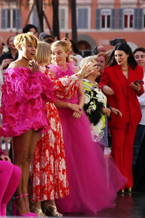 On Friday, July 8, Pugh got to take in the Valentino haute couture show in Rome, Italy. She wore a dress and platform shoes in matching bright pink. In a post on her Instagram (which can be seen here and contains nudity), she wrote, “Technically they’re covered?” referencing the sheerness of the gown.