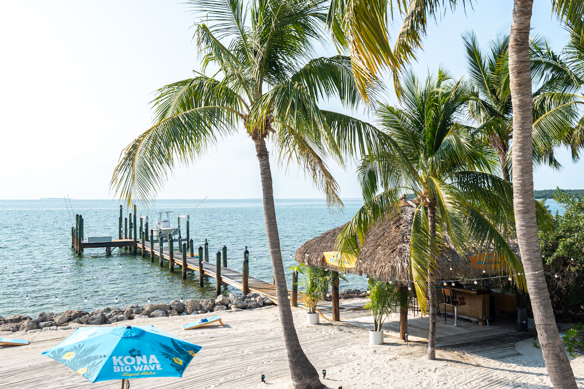 The band is playing reggae music in front of the pool. Under the thatched-roof cabana, people are cheers-ing and laughing at the bar. At the dock, a boat of more guests is arriving. And then there’s you, saying yes to another passed appetizer on the beach as the sun sets on the aqua-blue horizon. This scene sounds like it’s set at a big, public waterfront restaurant, but it’s actually a private backyard… and it belongs to the Florida Keys’ most decked-out vacation house of the summer.