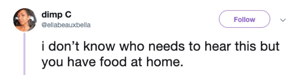 This meme started out as a format for religious tweets intended to be inspirational, but alas, Twitter turned it into something completely different. Now, “I don’t know who needs to hear this” can be applied to any tweet that makes a bold statement that could be applicable to a large audience.