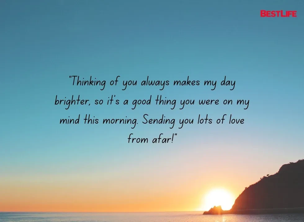 - Thinking of you always makes my day brighter, so it’s a good thing you were on my mind this morning. Sending you lots of love from afar!