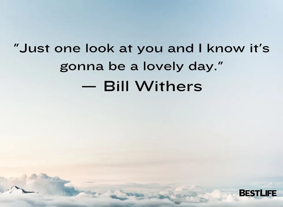 - “Just one look at you and I know it’s gonna be a lovely day.” — Bill Withers