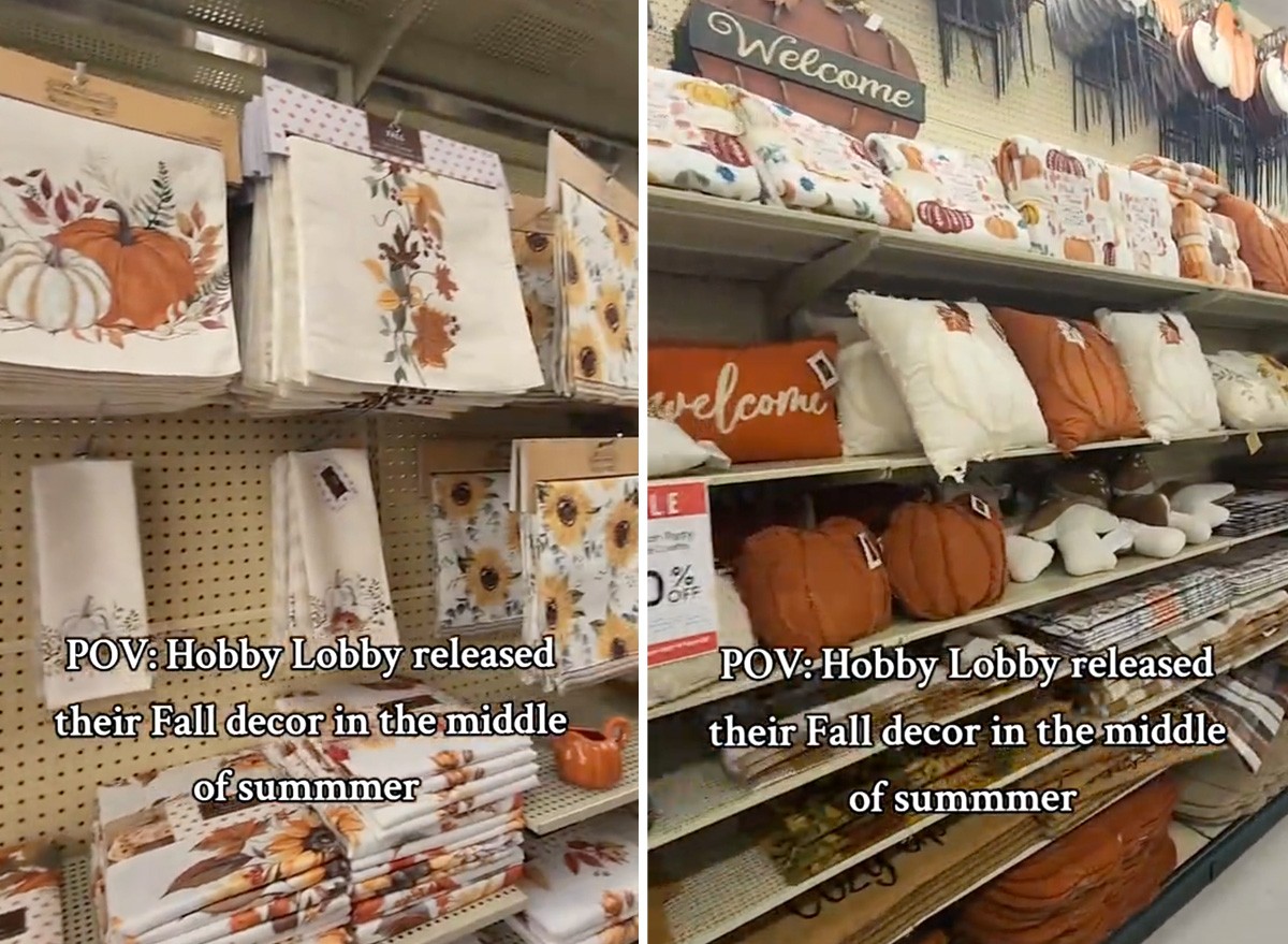 According to a video posted by TikTok user @silvia.yareli, Hobby Lobby is now selling tablecloths, napkins, tea towels, and placemats decked out with pumpkins, fall foliage, and more.